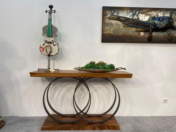 In reiner Handarbeit gefertigtes Einzelstück aus aus massivem verleimten Suarholz und Rohstahlgestell
