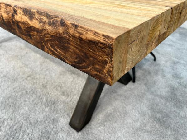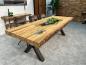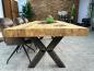 Maßtisch Esstisch "Deep Island Crossline" aus recyceltem Altholz mit einem Tischgestell aus Rohstahl