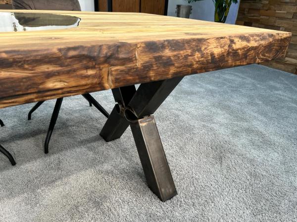 Maßtisch Esstisch "Deep Island" mit einem Tischgestell aus Rohstahl "Crossline"