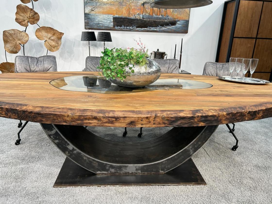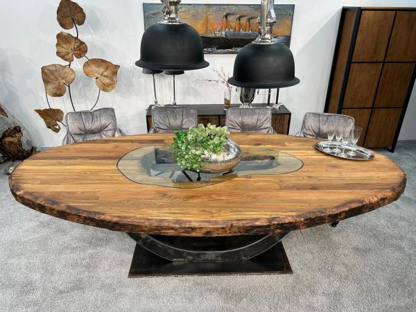 Beispiel: Ovaler Esstisch "Sky Island" im Format 280 x 140 cm aus recyceltem Holz, massiv 10 cm