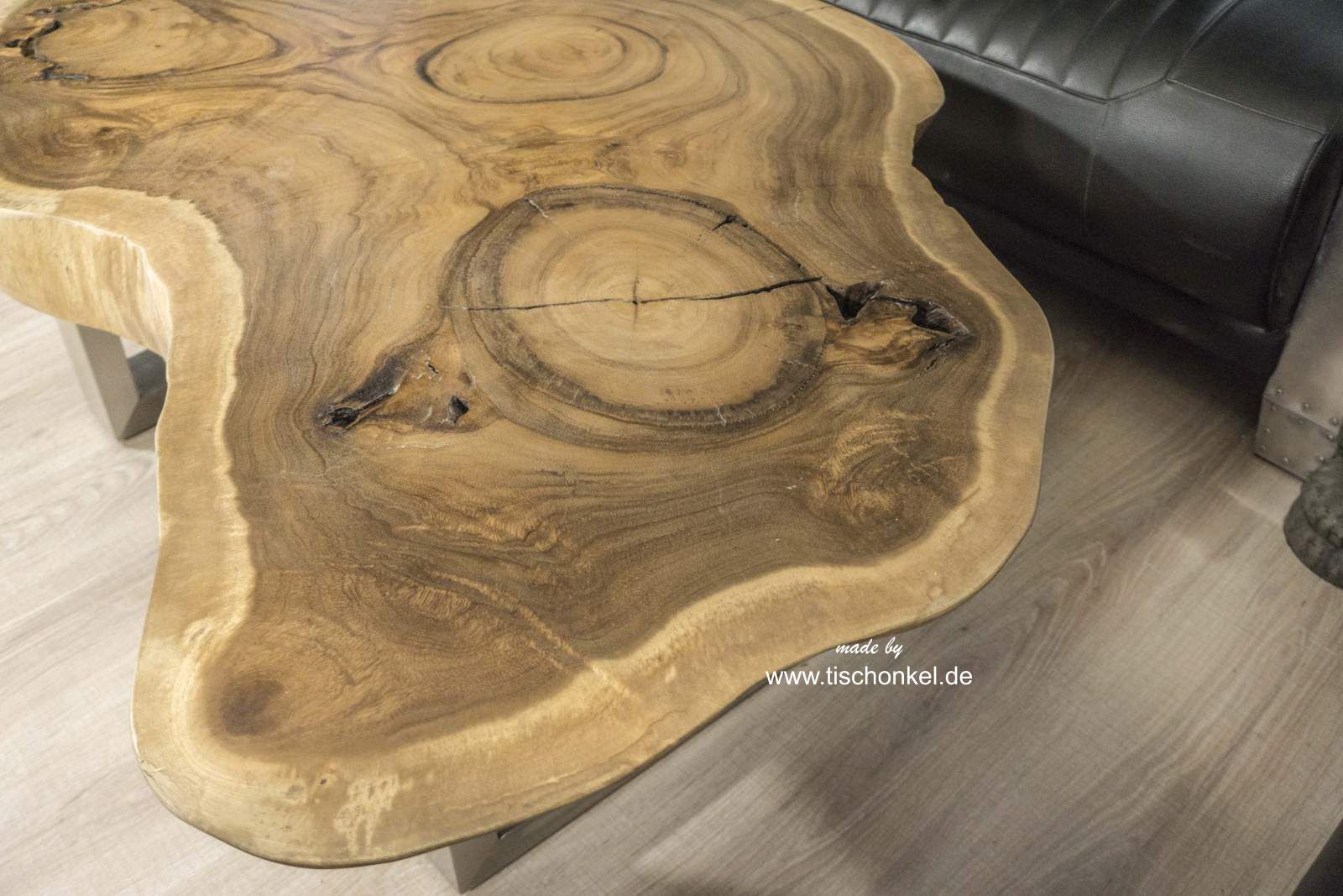 Atemberaubender Baumstamm Couchtisch aus einer massiven Baumscheibe von Gerken Wohndesign