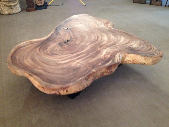 Dieser wunderschöne Massivholztisch wurde aus einer einzelnen Scheibe des Baumes „Suar“ gefertigt. Suar ist der Akazie in Struktur und Farbe sehr ähnlich. Markant ist das helle Splintholz, welches dem Gesamtbild einen ganz besonderen Charakter verleiht.