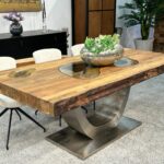 Jeder Tisch aus unserem Hause wird in reiner Handarbeit gefertigt und wird somit zu einem absoluten Unikat. Wir verwenden für die meisten Esszimmertische recyceltes Holz. Das ist nicht nur nachhaltig, sondern die Form und Struktur der 70 – 100 Jahre alten Massivholzbohlen transportiert ein ganz besonderes Flair.