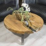 Für den Couchtisch „Natural Landscape“ kommen Baumscheiben alter Baumstümpfe zum Einsatz. Bei der Anordnung der Baumscheiben erhalten wir die natürlich vorkommenden Baumkanten und Verwachsungen im Holz und betonen diese durch aufwendig verarbeitete Glasplatten.
