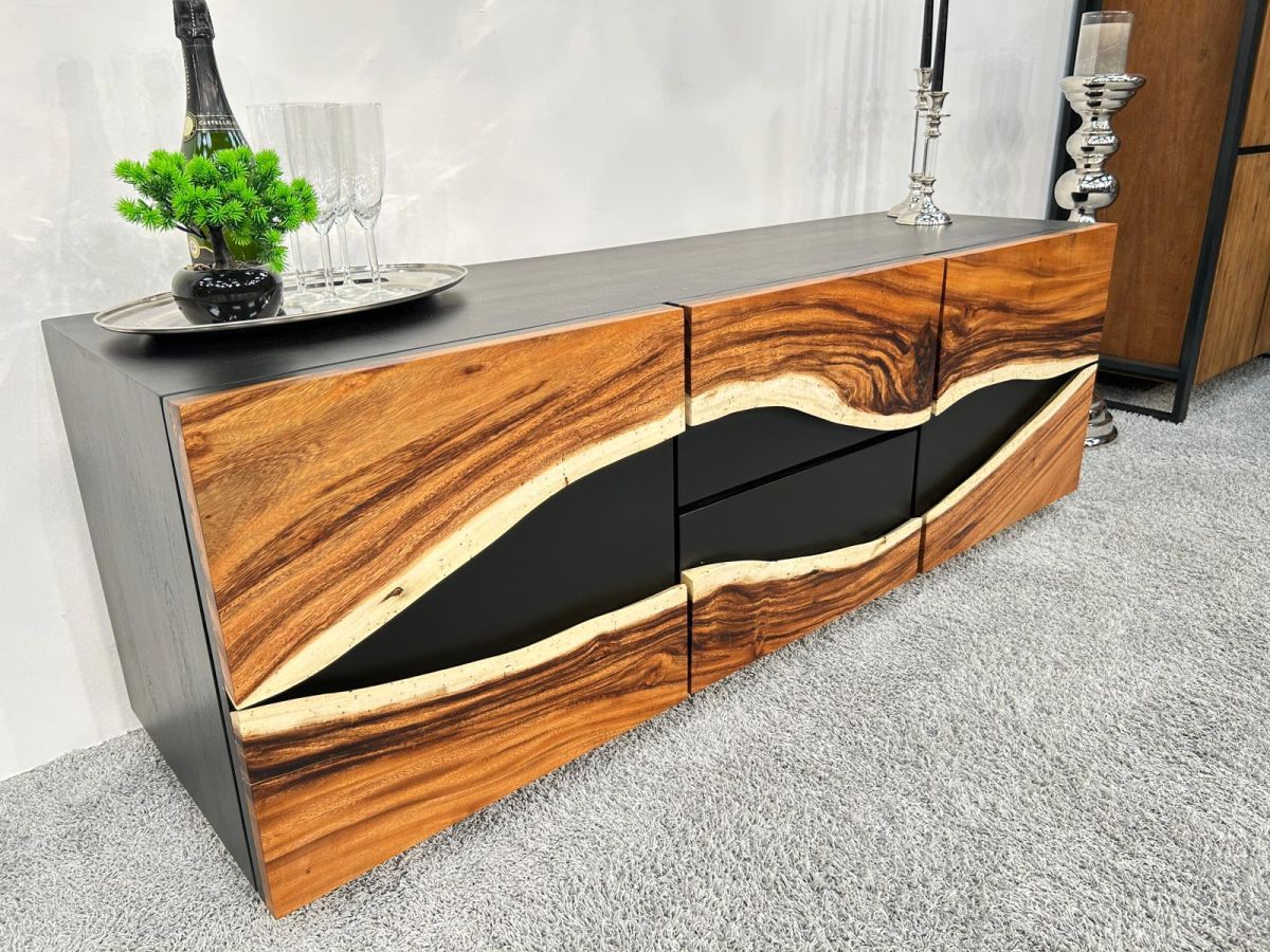 Ein Holz-Sideboard kann nicht nur praktisch sein, sondern auch einen bedeutenden Beitrag zur Raumgestaltung leisten. Die Vielseitigkeit dieser Möbelstücke ermöglicht es, verschiedene Stile und Ästhetiken zu integrieren. Ganz gleich, ob Sie den rustikalen Charme des Altholz Sideboards, die natürliche Eleganz des Baumscheiben-Designs, einmalige Suarholz Modelle oder den versteinerten Stil bevorzugen – mit einem einmaligen Sideboard aus Holz können Sie Ihrem Zuhause eine persönliche Note verleihen.