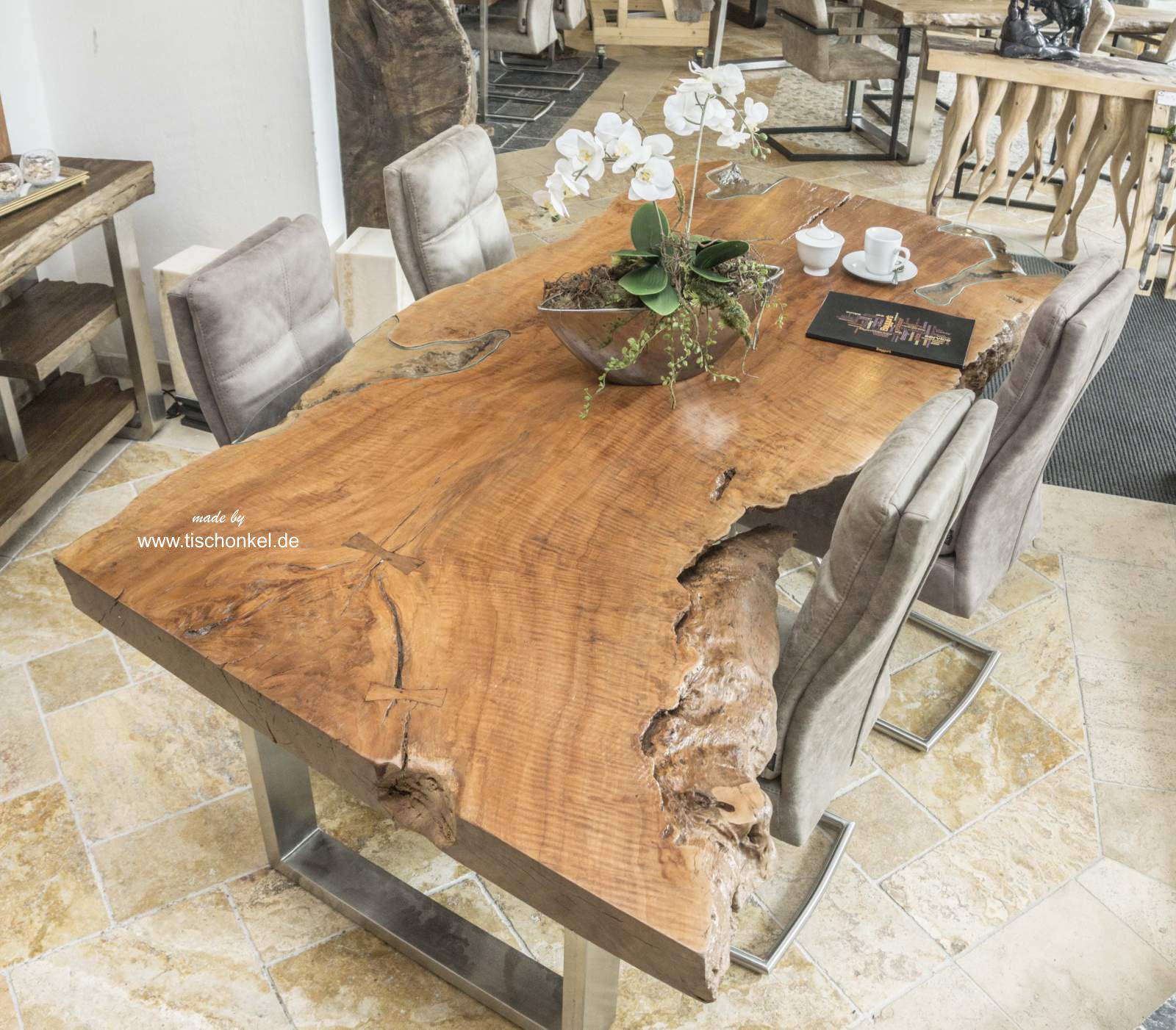 Wenn Sie nach einem Konferenztisch oder Esstisch aus einer massiven Holzbohle, bzw. einem einzigen Baumstamm suchen, sind Sie bei uns ganz richtig. In unserem Onlineshop „Der Tischonkel“ bieten wir Tische dieser Bauart in verschiedenen Holzarten und Längen, z.B. Suar, einer Hülsenfrucht, oder auch Tamarind, ebenfalls eine Hülsenfrucht, an. Durch klicken auf folgende Kategorie „Esstische aus Baumscheiben“ gelangen Sie direkt in die passende Auswahl in unserem Onlineshop.