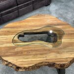 | Glaseinlage | Handgefertigte Glasplatte in der Mitte der Tischplatte |