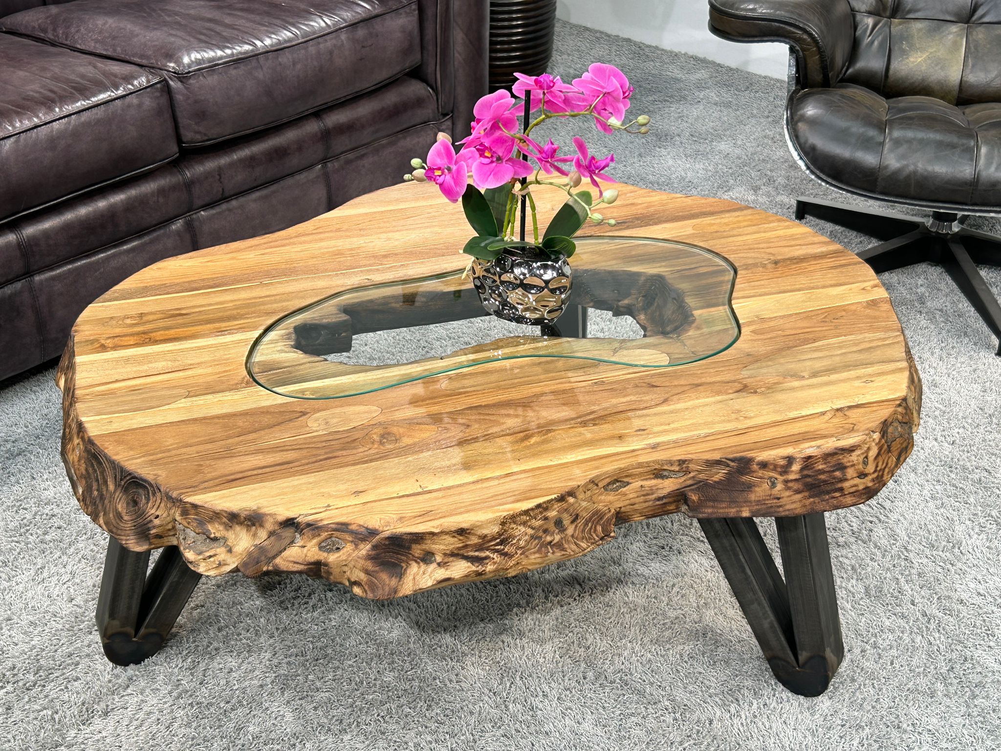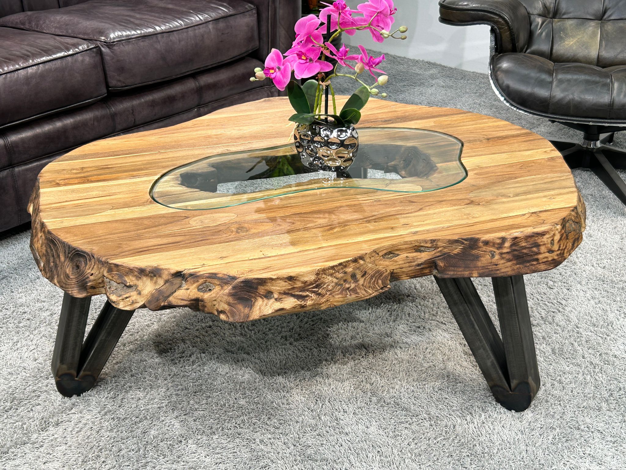 Der Wohnzimmertisch Atoll ist eine vielseitige Wohnzimmeridee, die durch recyceltes Holz, eine hochwertige Verarbeitung und eine stilvolle Glaseinlage überzeugt. Die Kombination aus Massivholz und Metall passt sowohl in industrielle als auch moderne Wohnbereiche.