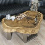 Wohnzimmertisch aus einer Baumscheibe mit einem tollen Gestell aus Edelstahl