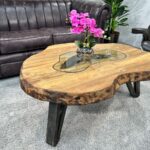 Baumscheibentische sind eine Hommage an die natürliche Schönheit von Bäumen. Diese Tische werden aus massiven Baumscheiben geschnitten, wodurch die natürliche Maserung und die Ringe des Baumes sichtbar werden. Dies verleiht dem Tisch eine einzigartige Ästhetik und macht ihn zu einem Kunstwerk inmitten des Wohnzimmers. Baumscheibentische sind in verschiedenen Größen und Holzarten erhältlich und bringen die Schönheit der Natur direkt ins Zuhause. Sie harmonieren besonders gut mit einem modernen, rustikalen oder natürlichen Einrichtungsstil.
