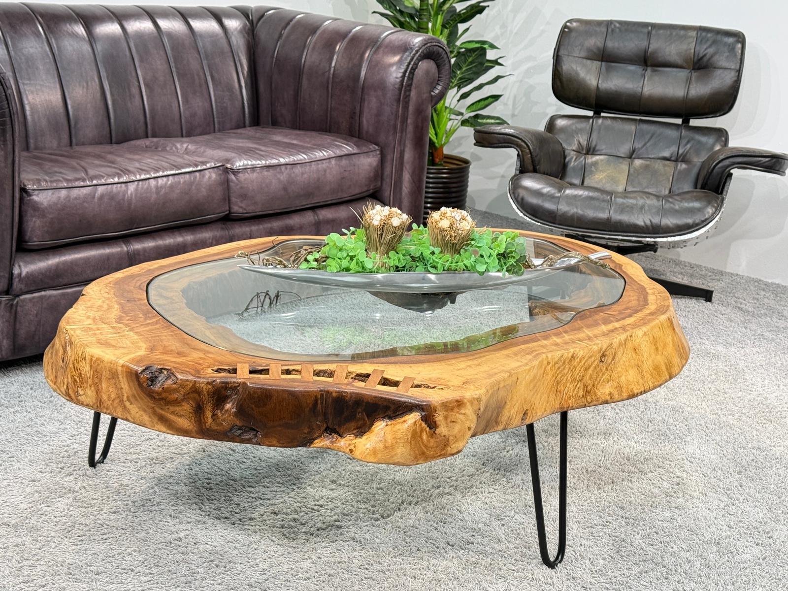 Wohnzimmertisch LAKESIDE, ca. 135 x 90 x 40 cm, aus einem Baumstamm (Suar)