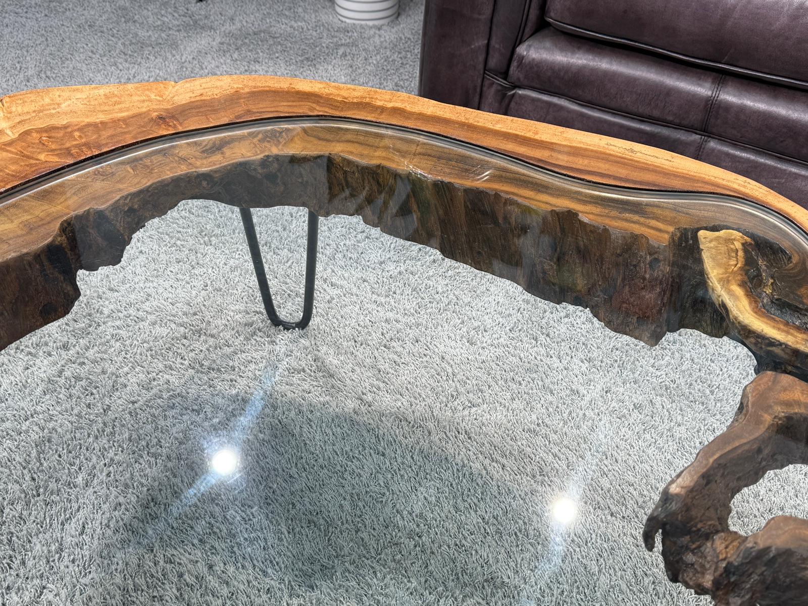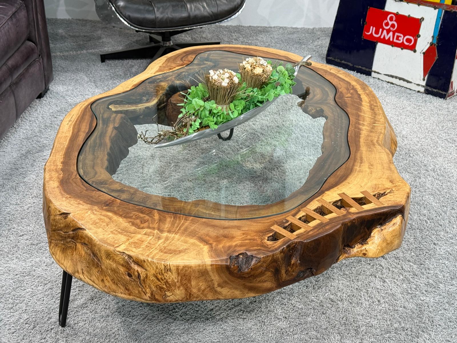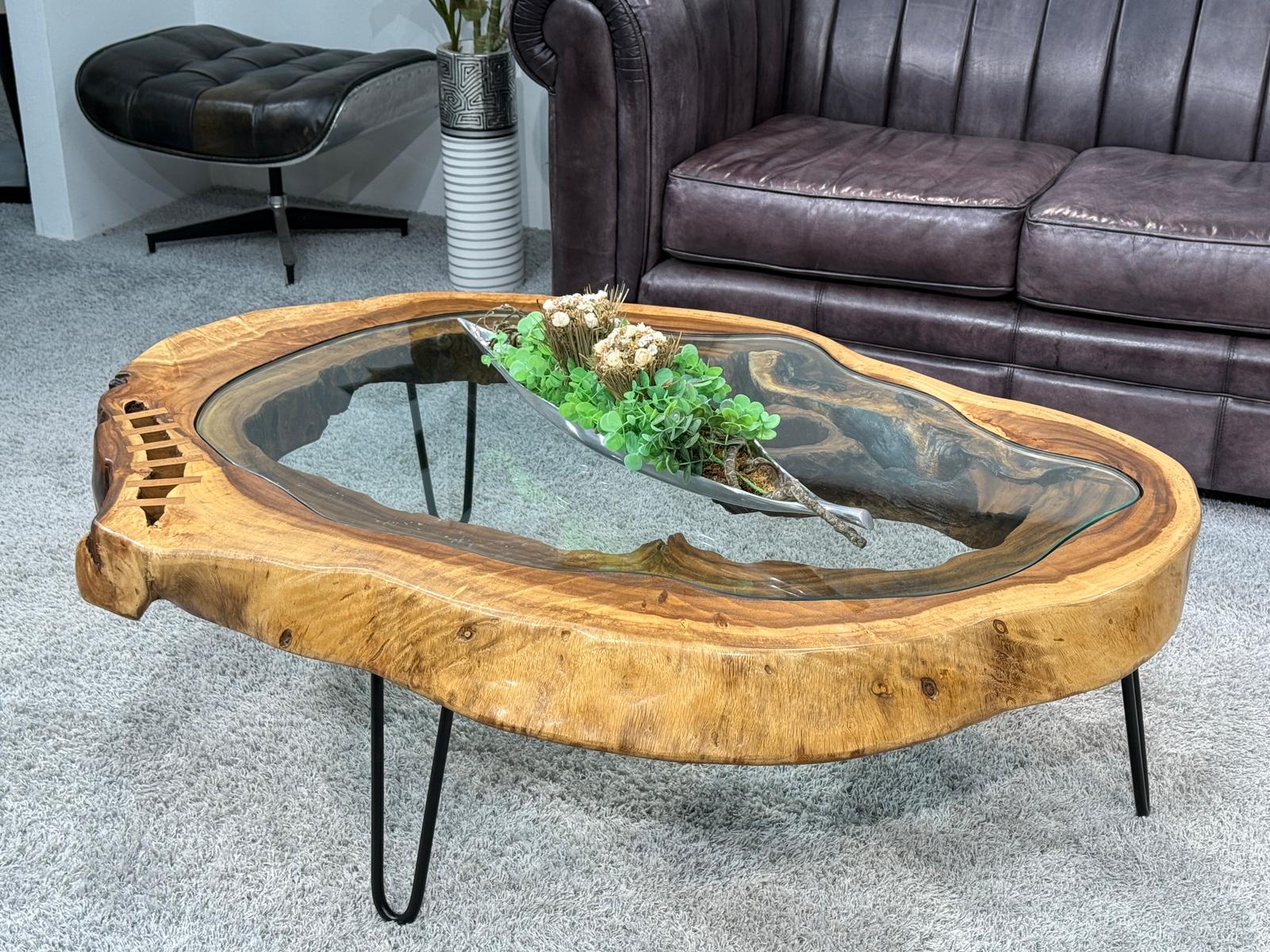 Produktdetails: Ovaler Couchtisch aus einem Baumstamm