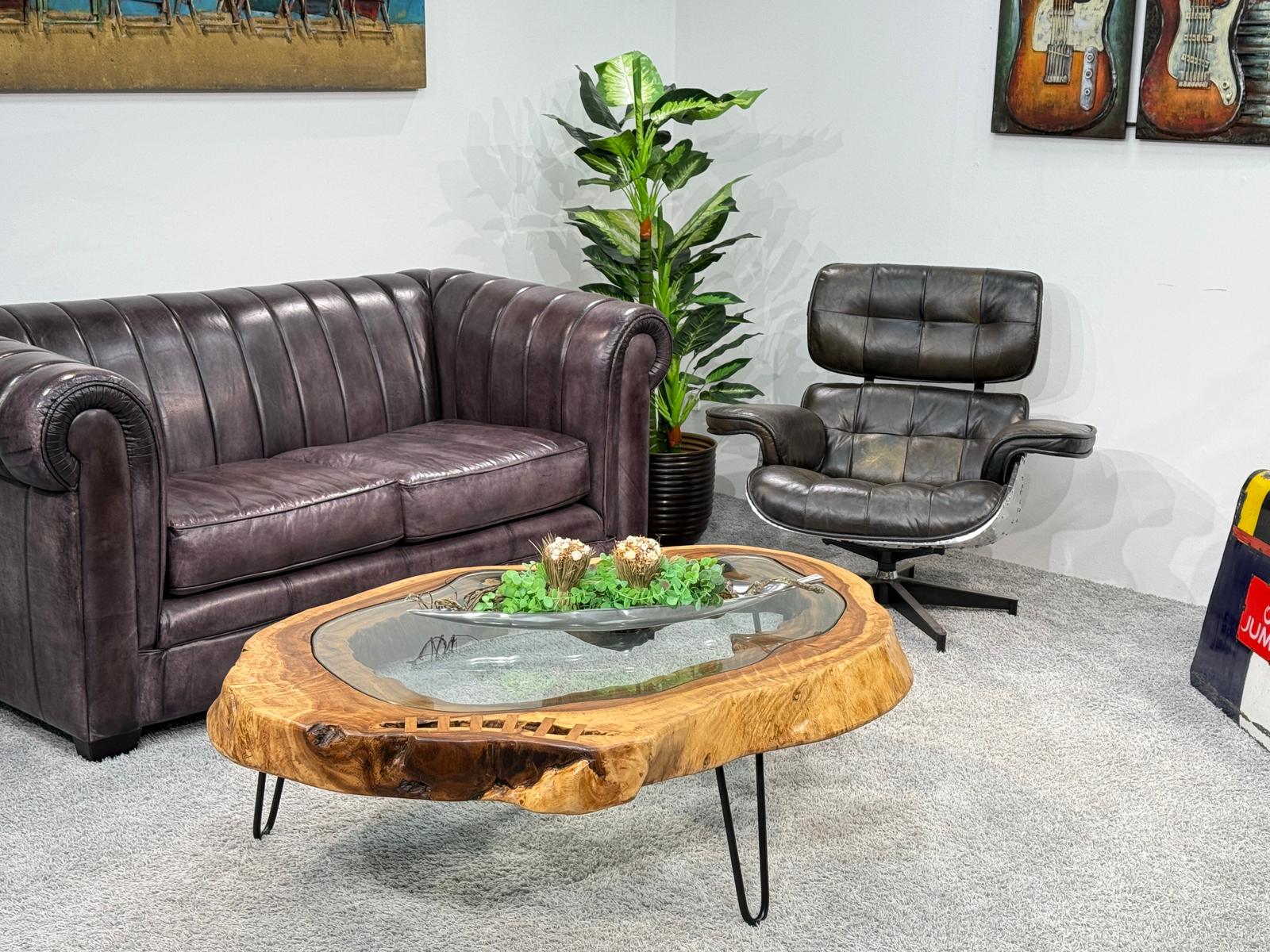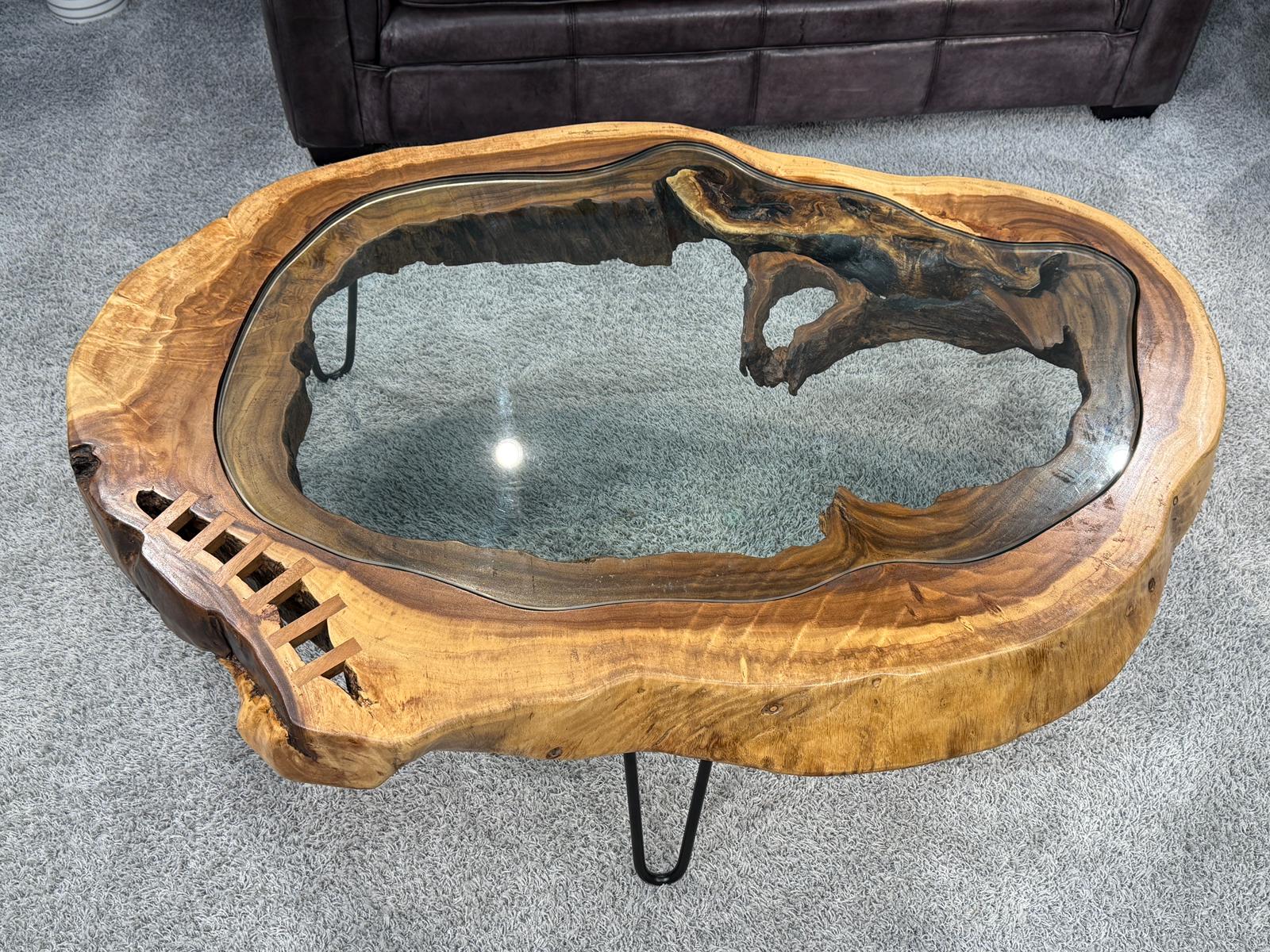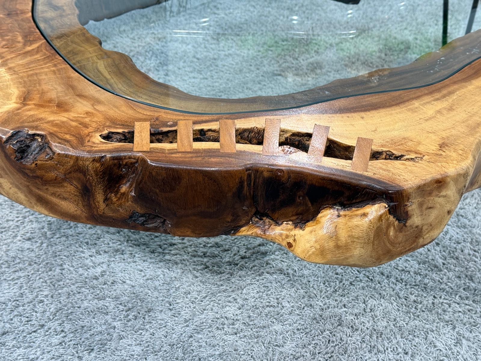Produktdetails: Ovaler Couchtisch aus einem Baumstamm