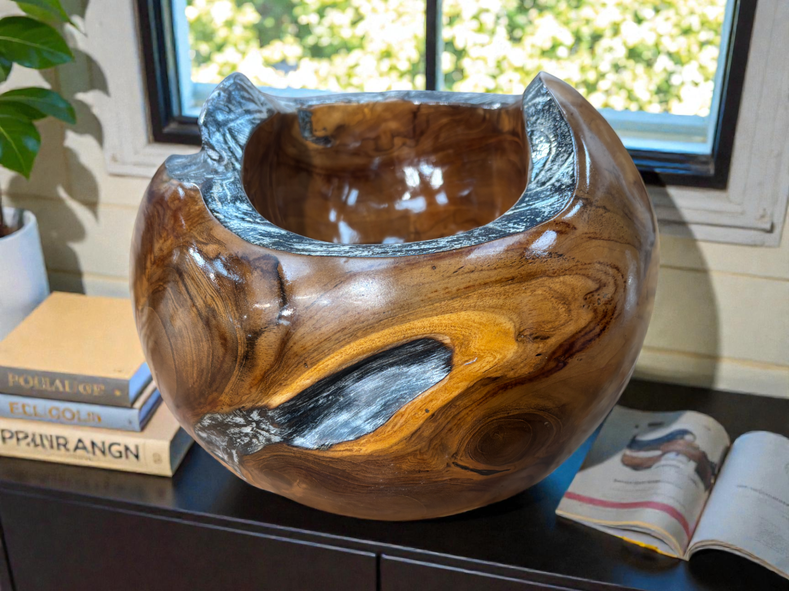 Die Holzschale "Cecilia" (Größe M) ist ein stilvolles Einzelstück für alle, die natürliche Materialien und echte Handarbeit schätzen. Gefertigt aus massivem Teakholz, wurde diese dekorative Schale von Hand geschnitzt und aufwendig veredelt. Durch ihre organische Form, die sichtbare Maserung und den glänzend lackierten Innenbereich wird sie zu einem echten Blickfang.