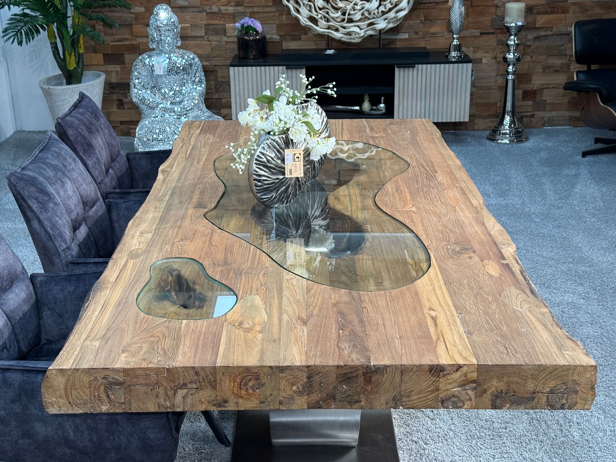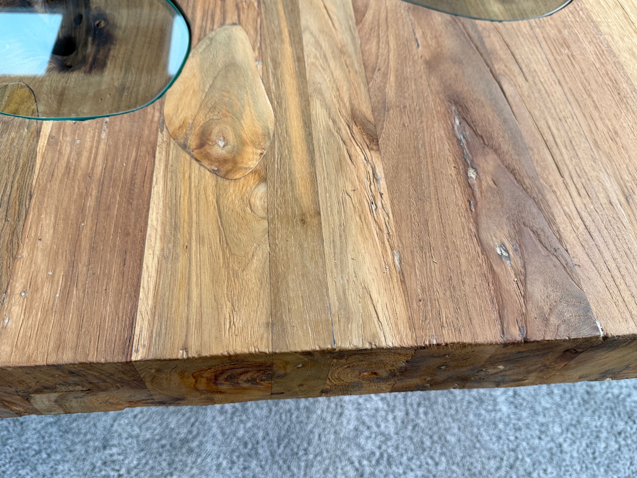 Materialien: Recyceltes Altholz (Teakholz), Glas, Edelstahl