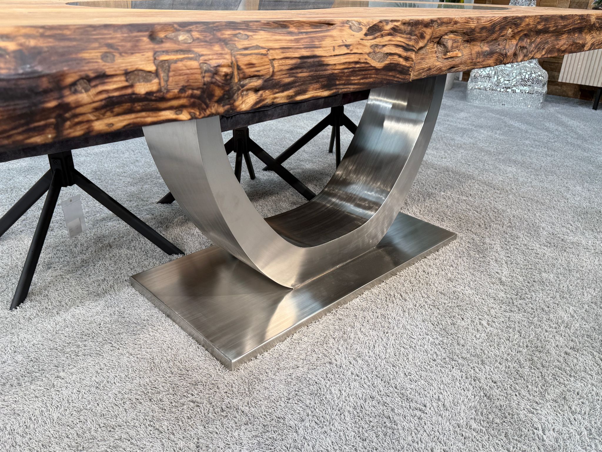 Das Halbmondgestell ist bei der Serie "Deep Island" eindeutig am beliebtesten. Zusätzlich bieten wir noch verschiedene Tischgestelle, passend zu unterschiedlichen Einrichtungsstilen an. Die Tischgestelle sind aus gebürstetem Edelstahl und seidenmatt lackiertem Rohstahl im Industriedesign erhältlich und passen perfekt zum Design der Tischplatte. Darüber hinaus gibt es die Option der Maßanfertigung, um den Tisch an Ihre individuellen Bedürfnisse anzupassen. Bei Fragen zu den Möglichkeiten einer Sonderanfertigung sprechen Sie uns bitte gerne an.