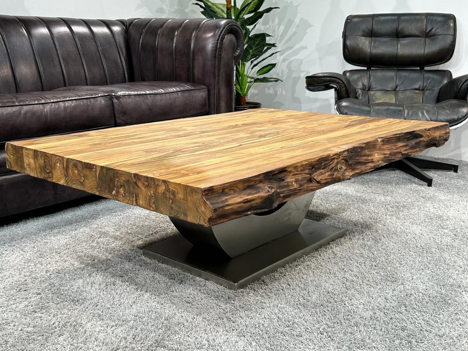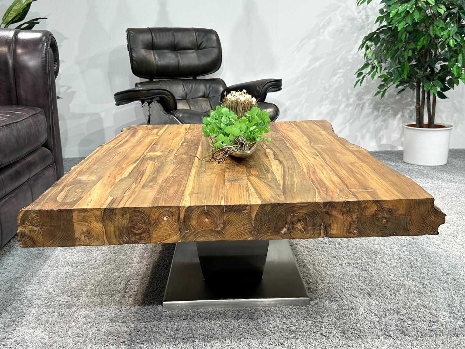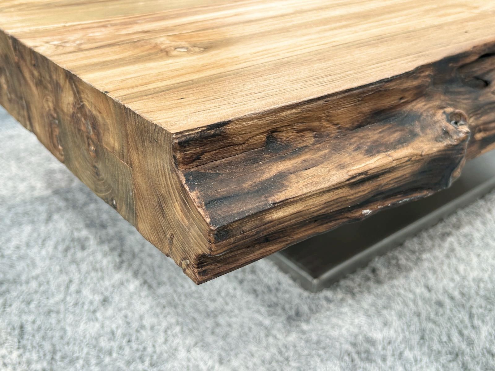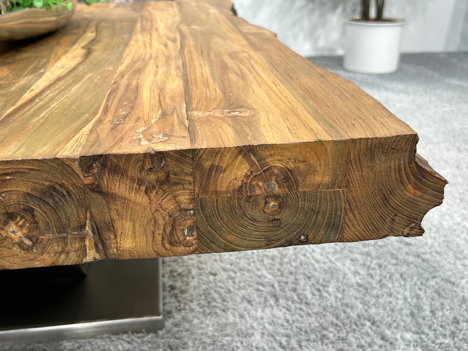 Eckiger Couchtisch "Deep Island Stainless" aus Maß, aus recyceltem Teakholz auf Wunschmaß gefertigt