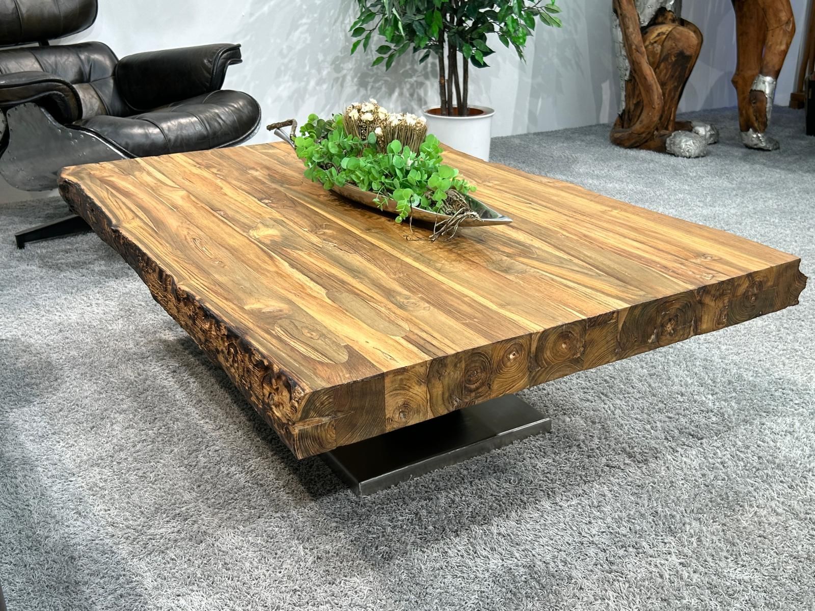 Seine eckige, mit seitlicher Baumkante Grundform, lässt diesen Couchtisch aus nachhaltigen Altholz zu einer kleinen Besonderheit werden. Die Tischplatte besteht aus 8 cm massivem Altholz ehemaliger Häuser der Inseln Java und Bali, wo dieser Tisch in einem kleinen Familienbetrieb vorgefertigt wurde. Nach Eintreffen der Couchtische werden diese in unserer hauseigenen Werkstatt aufgearbeitet und mit hochwertigem Möbelwachs versiegelt.