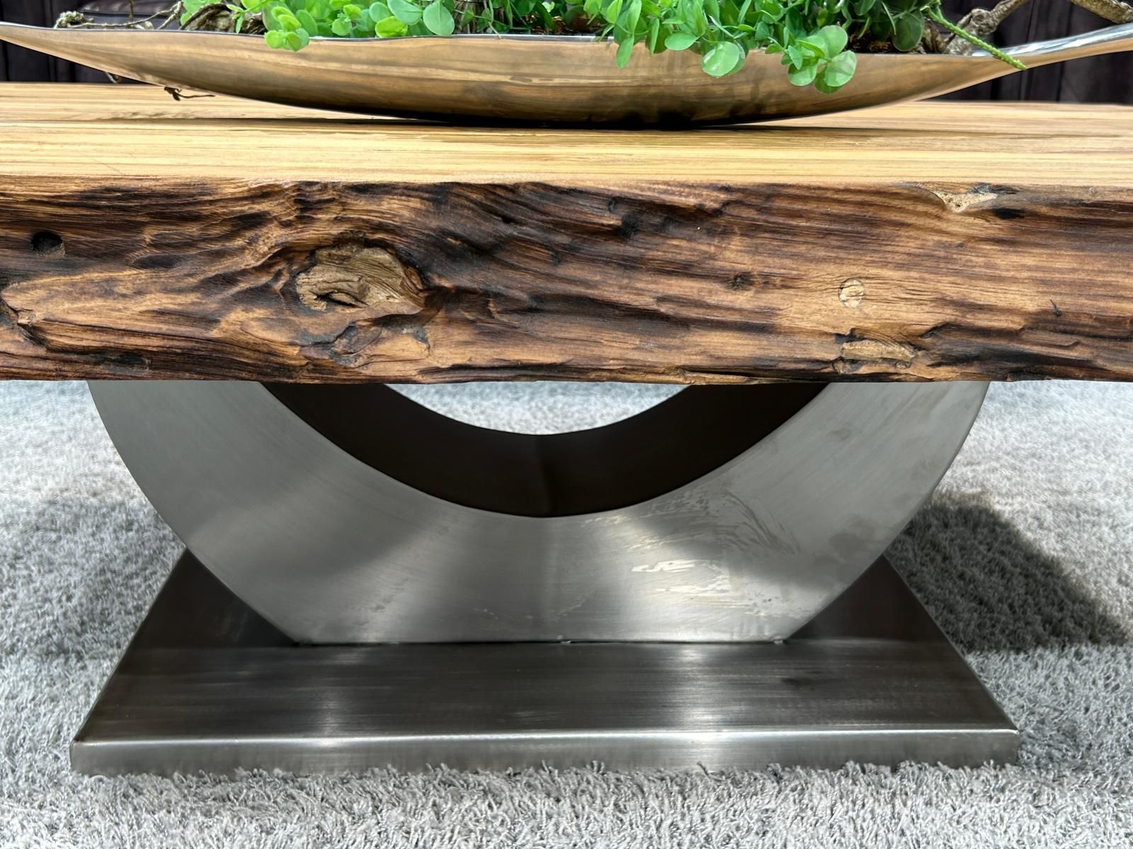 Material: Teakholz (recycelt) mit Tischgestell "Halbmond" aus gebürstetem Edelstahl