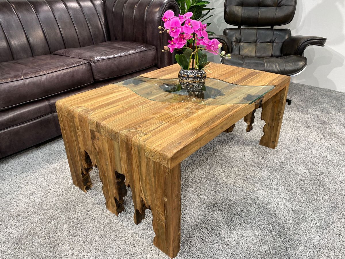 Beispiel: Couchtisch "Wild River" aus recyceltem Teak im Format 100 x 70 cm