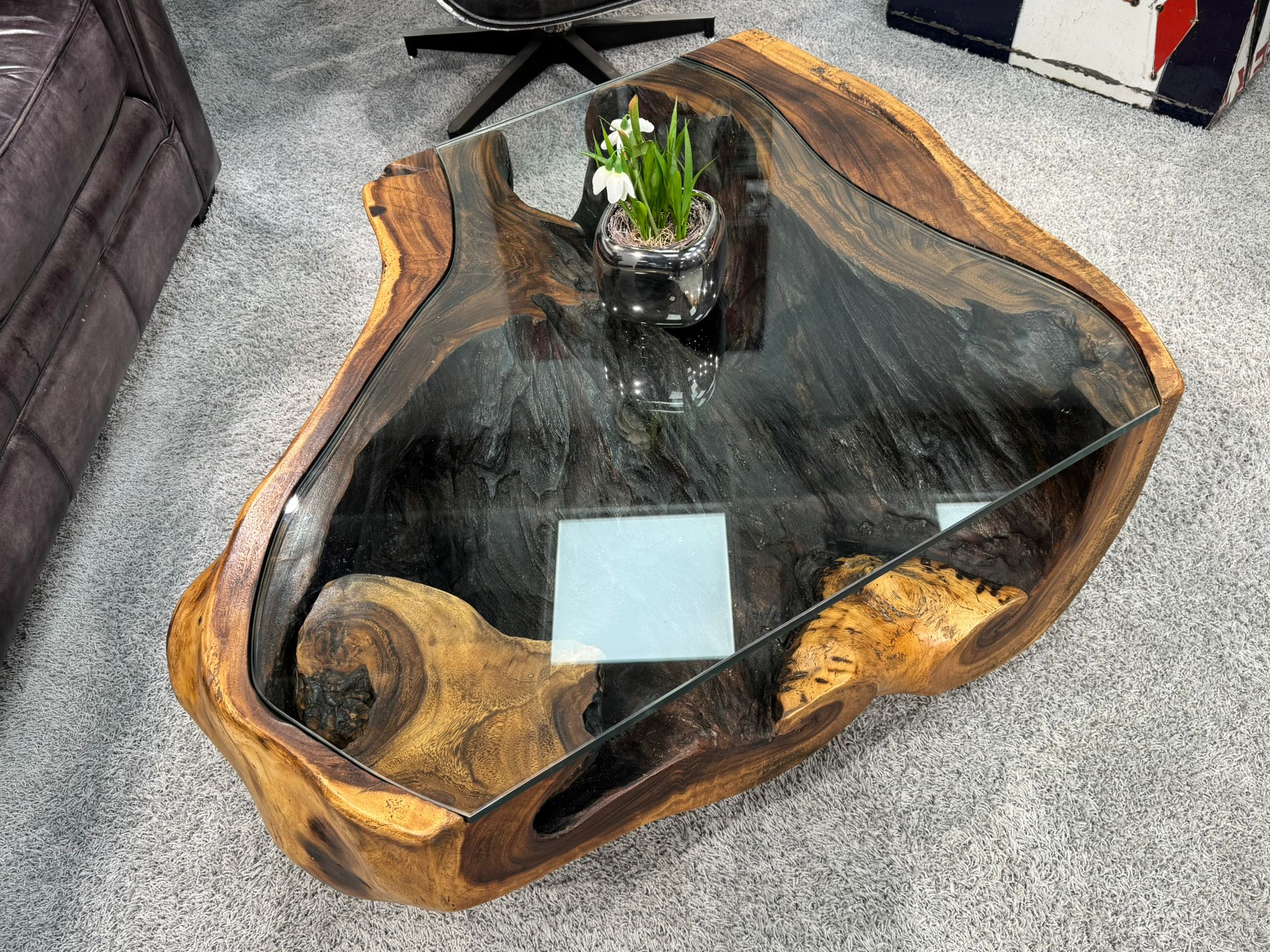 Wohnzimmertisch LAKESIDE, ca. 100 x 80 x 42 cm, aus einem Baumstamm (Suar)