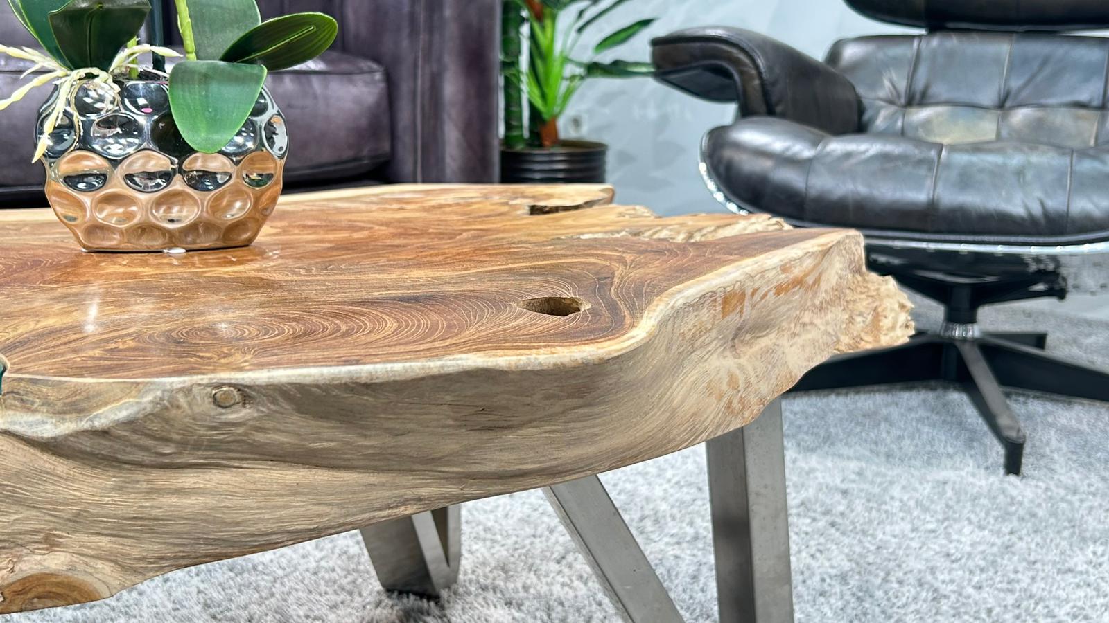 Durch das großzügige Format und die angenehme Höhe eignet sich dieser Tisch hervorragend als zentraler Couchtisch für Ihre Wohnlandschaft. Er fügt sich harmonisch in moderne sowie rustikale Wohnkonzepte ein und setzt einen warmen Akzent. Ein idealer Begleiter für alle, die das Besondere und Echte suchen.