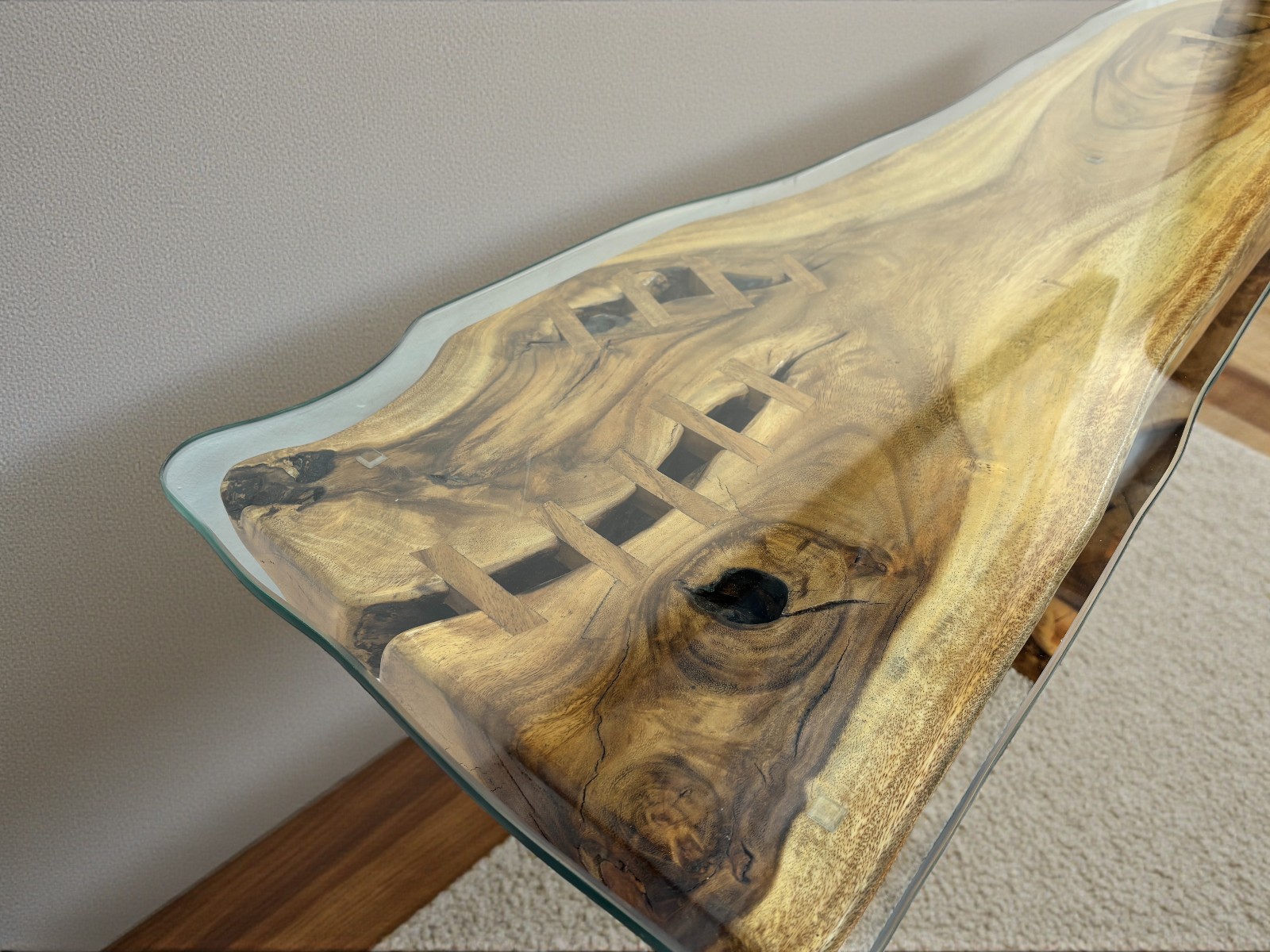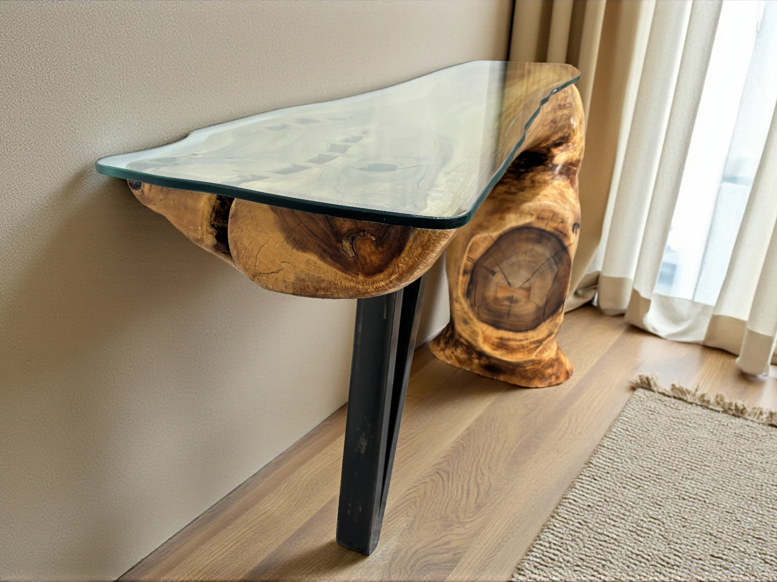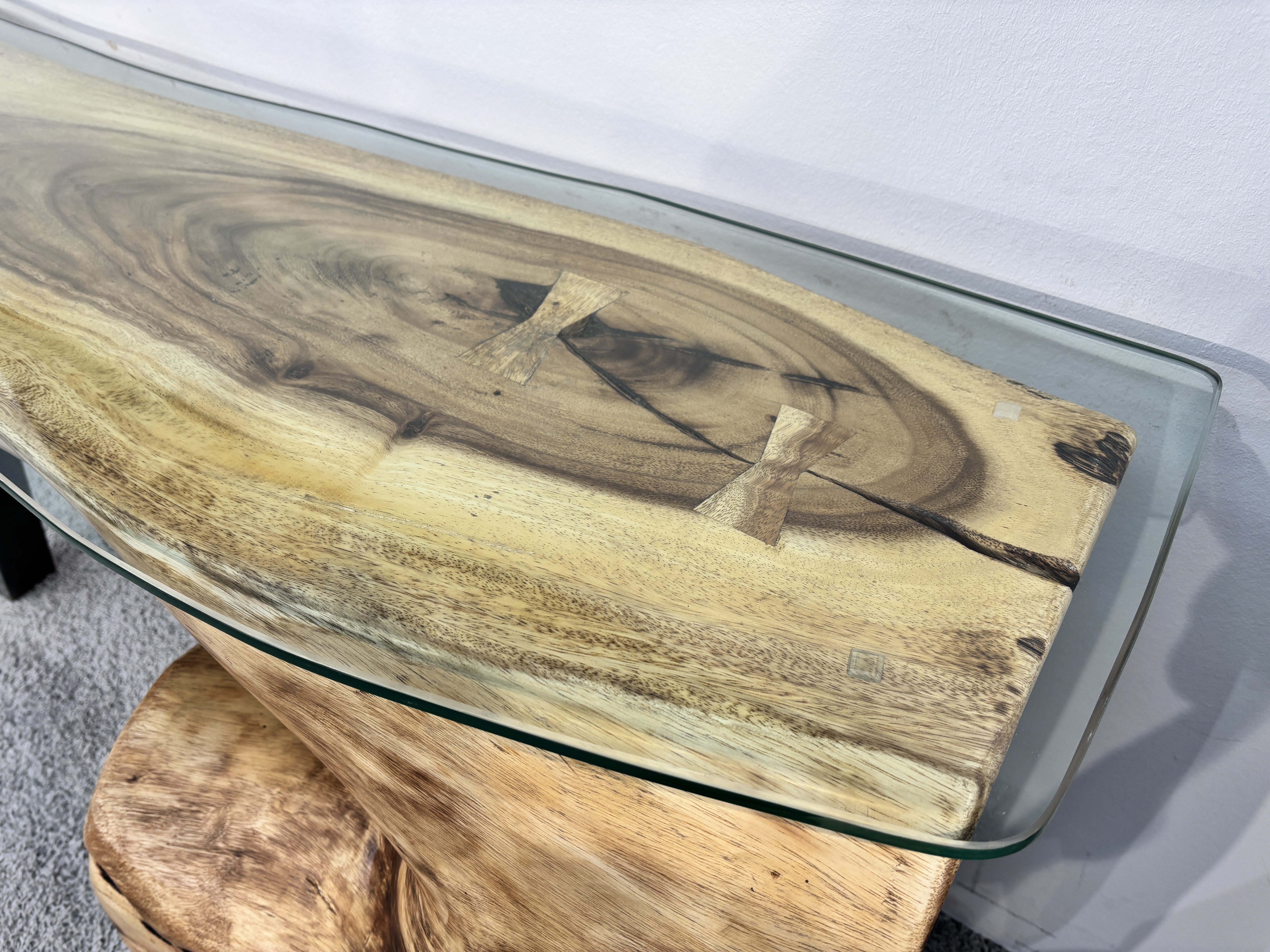 A unique piece handcrafted from a solid Suar wood tree trunk