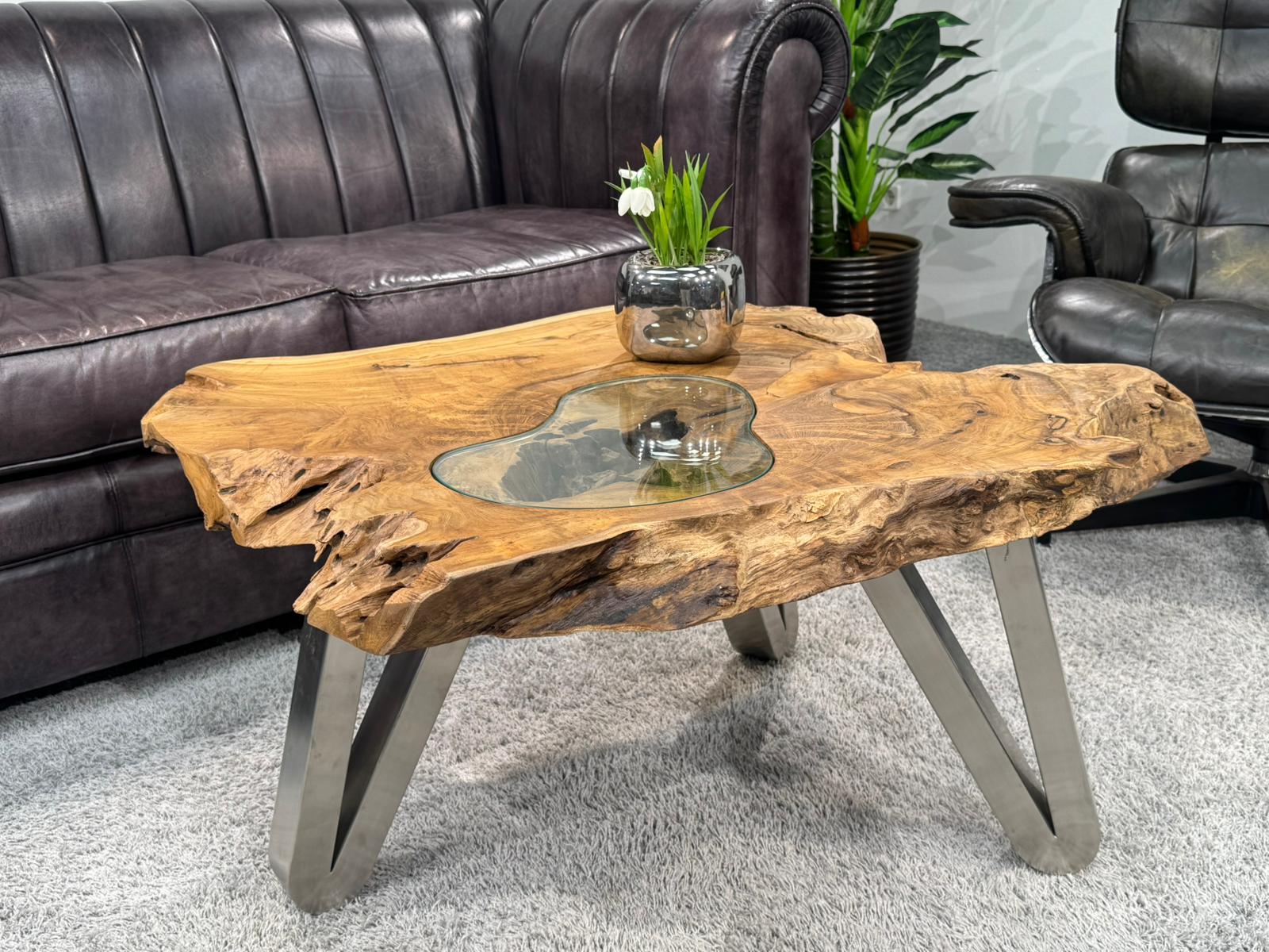 Tree Trunk Coffee Table from the "Lakeside" Series – Unique Piece Made from Old Teak Roots