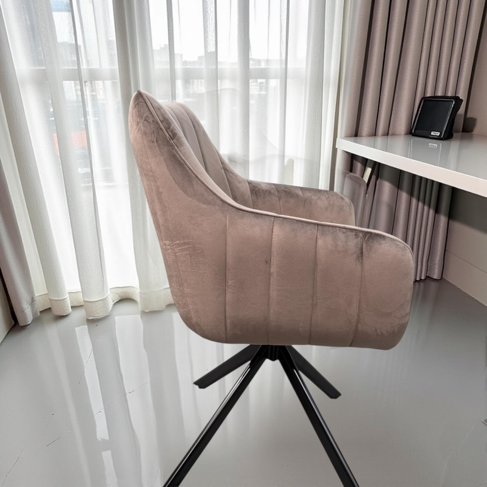 The swivel chair CADIZ in cappuccino color combines contemporary design and practical function. Its firm velvet upholstery appears cozy and durable at the same time. Thanks to the all-around swiveling seat surface with return mechanism, the chair automatically returns to its starting position after standing up – a particularly practical solution for modern dining areas.